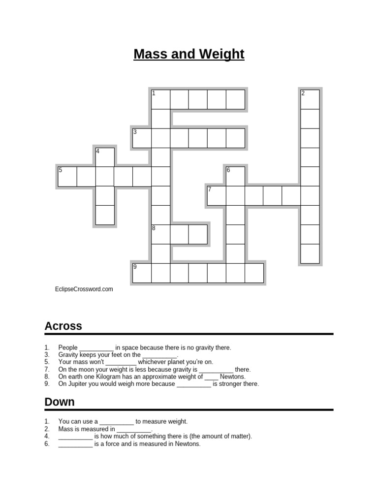 Mass Weight Crossword Crossword Puzzle