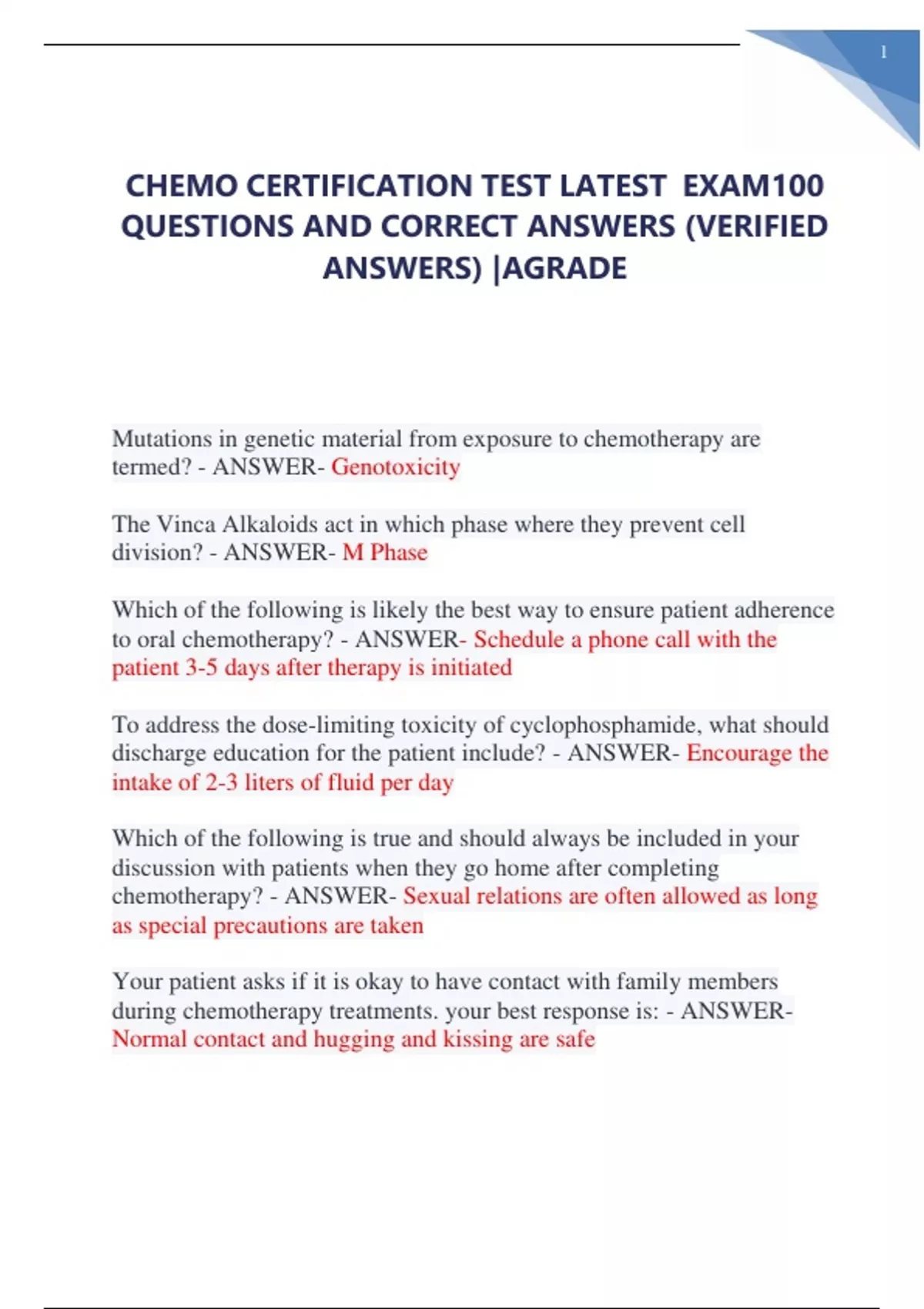 Practice Test Chemo Certification Chemo Certification Stuvia US