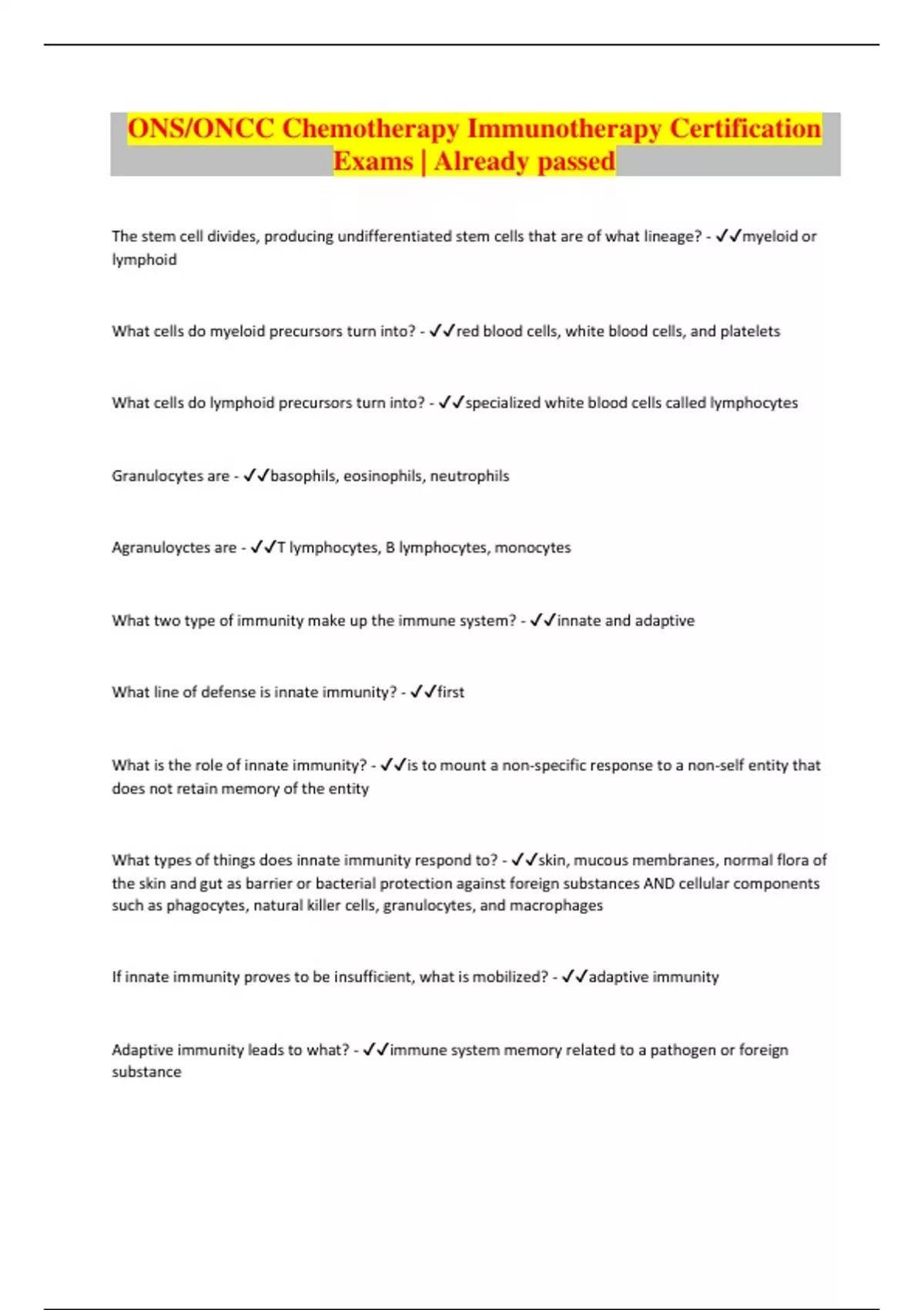 SOLUTION: Ons oncc chemotherapy immunotherapy certification questions