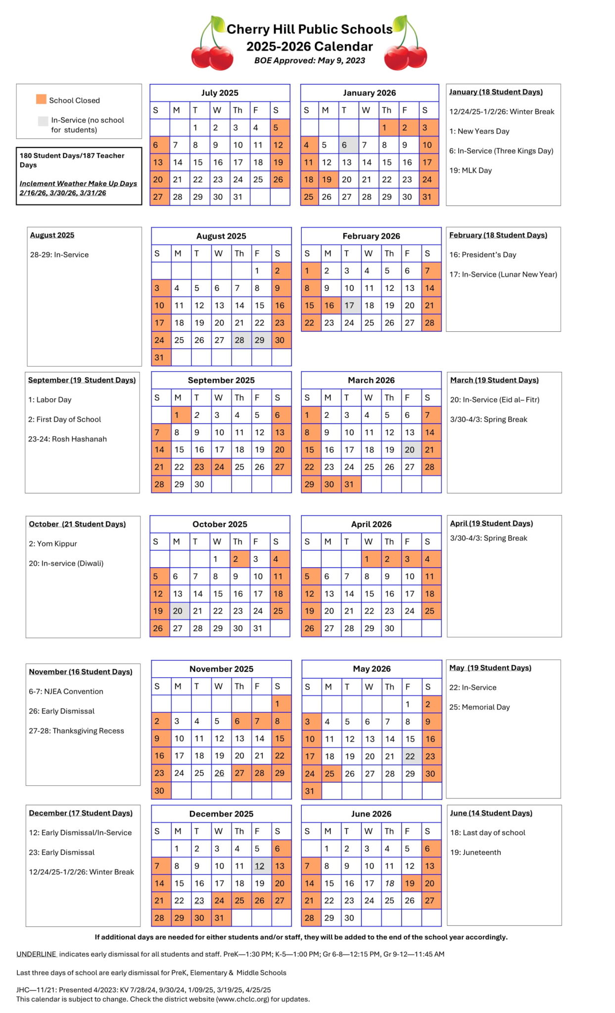 District Calendars 2024 2025 / 2025 2026 Cherry Hill Education