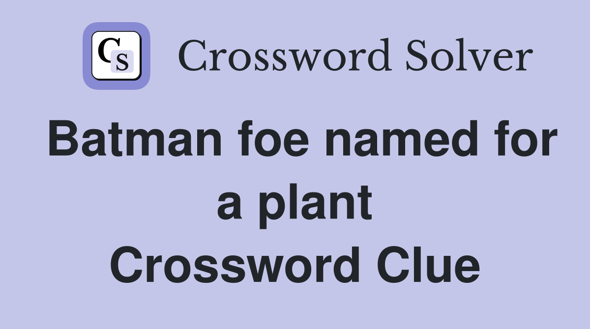 Batman foe named for a plant Crossword Clue Answers Crossword Solver