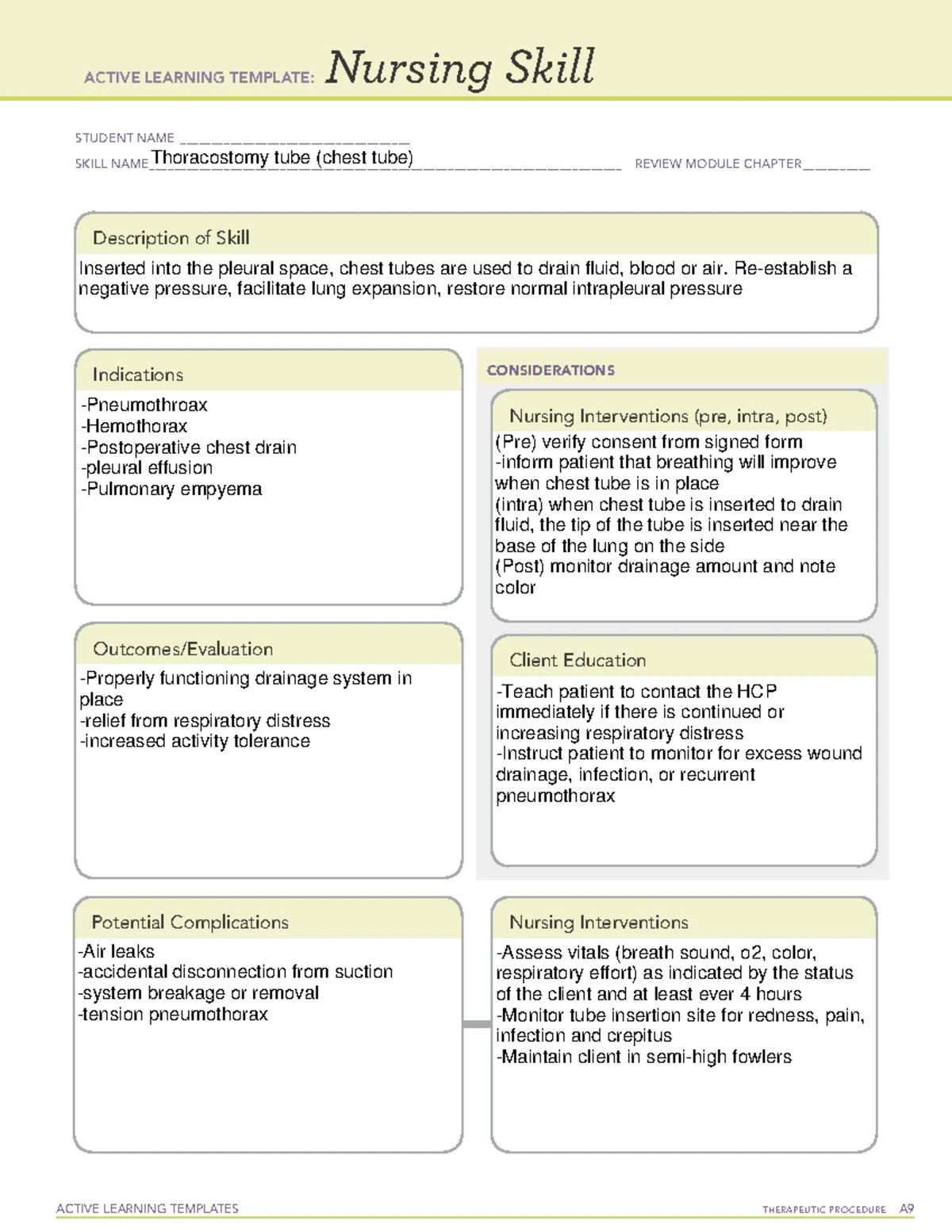 ATI Nursing Skill Template Chest Tube pdf ACTIVE LEARNING TEMPLATE