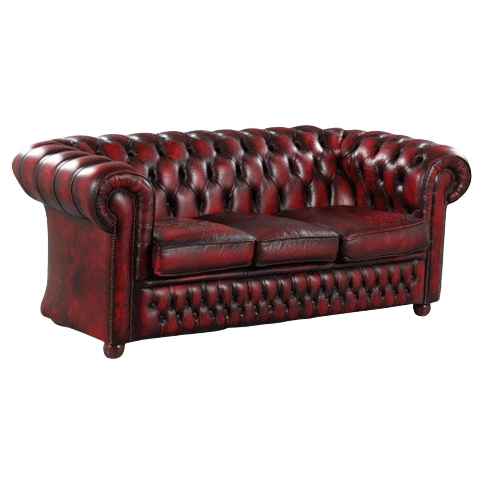 Chesterfield 3 Seater Antique Oxblood Red Real Leather Tufted Buttoned