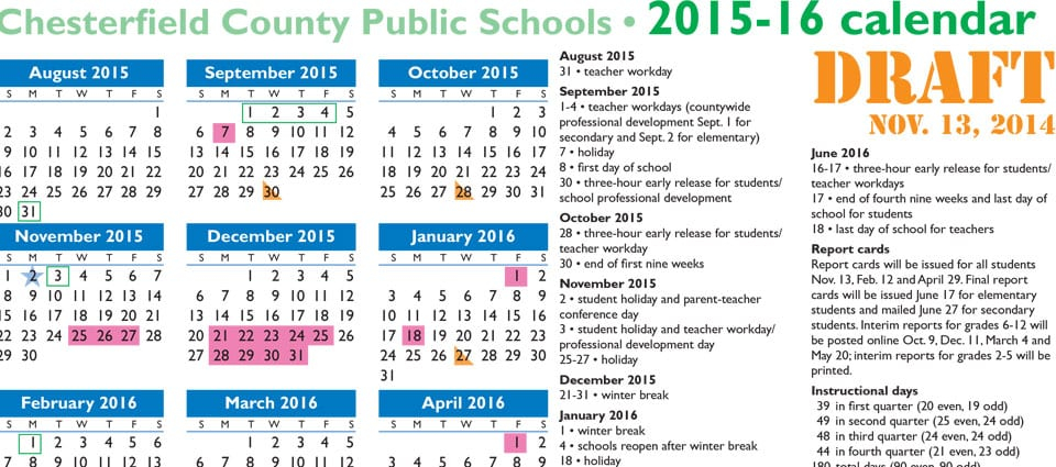Here are some of the images for Chesterfield Public Schools Calendar that we found in our website database.
