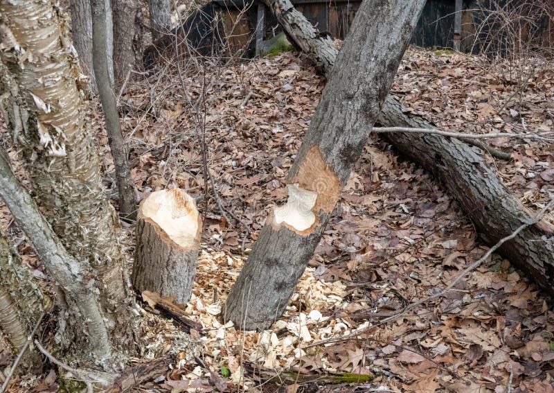 A Tree Chewed by a Beaver Fallen Tree by Beaver Stock Image Image of
