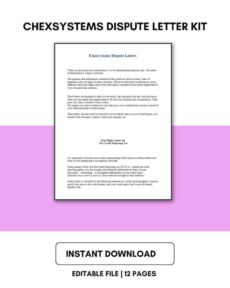 Chexsystems Dispute Letter Kit 3 Rounds of Letters Included Remove