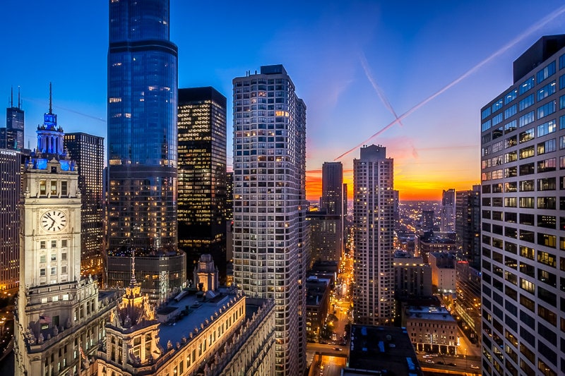 Chicago Skyline Wrigley Building Sunset Art Photography Print Wall