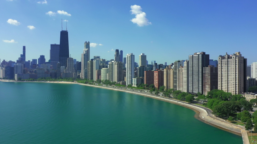 chicago skyline lake michigan aerial view Stock Footage Video (100%