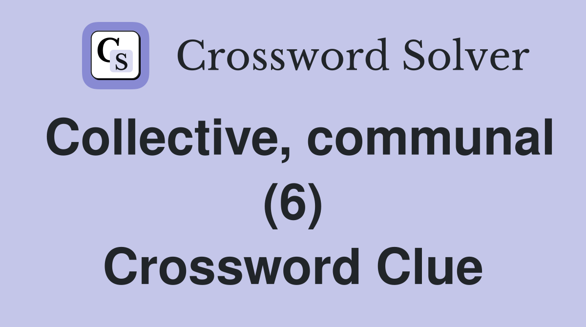 Collective communal (6) Crossword Clue Answers Crossword Solver