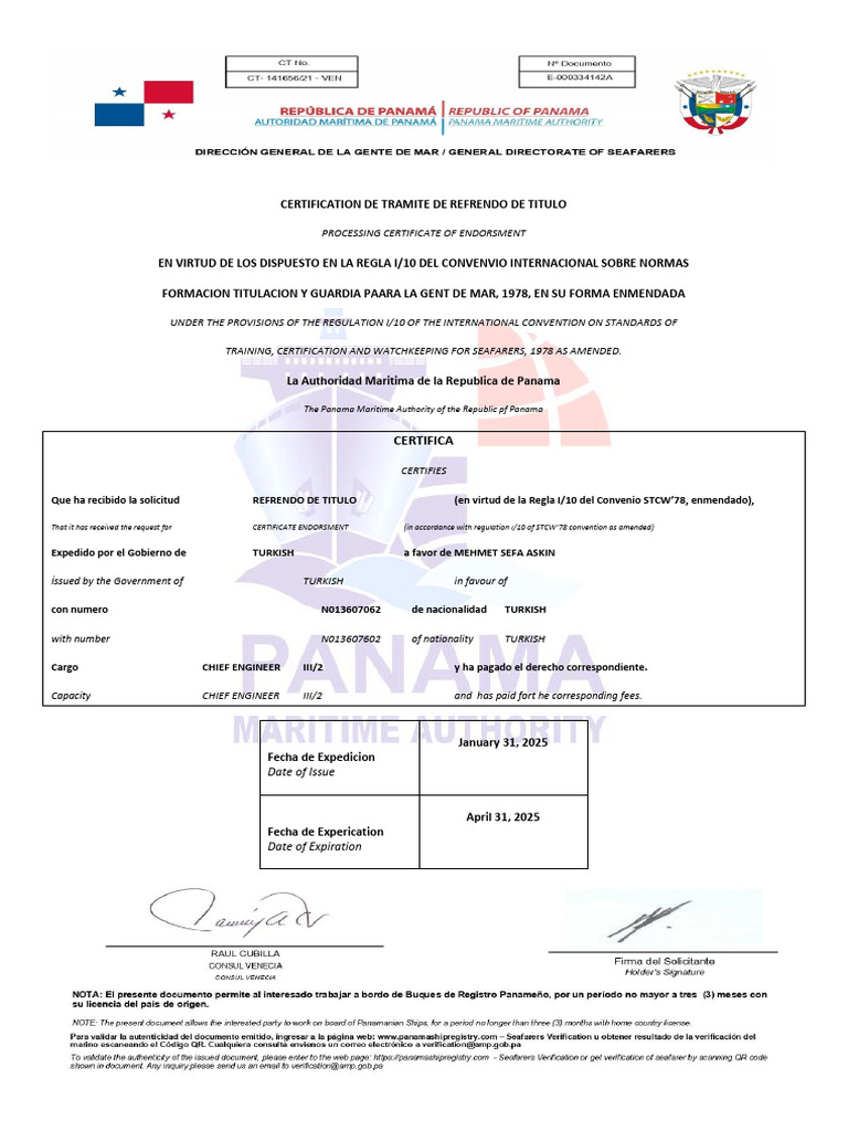 Panama STCW Certificate Endorsement PDF