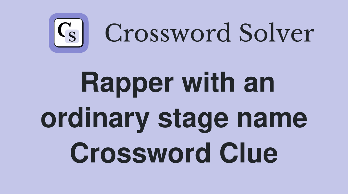 Rapper with an ordinary stage name Crossword Clue Answers Crossword