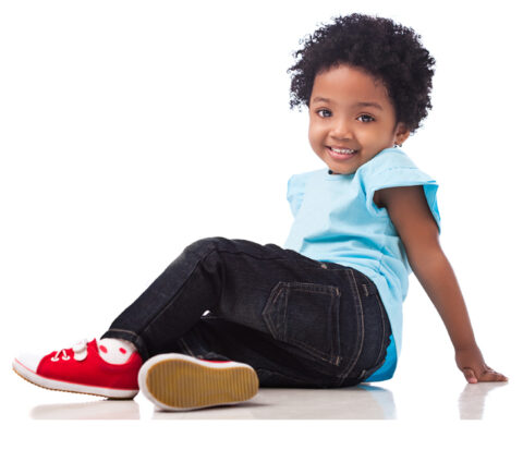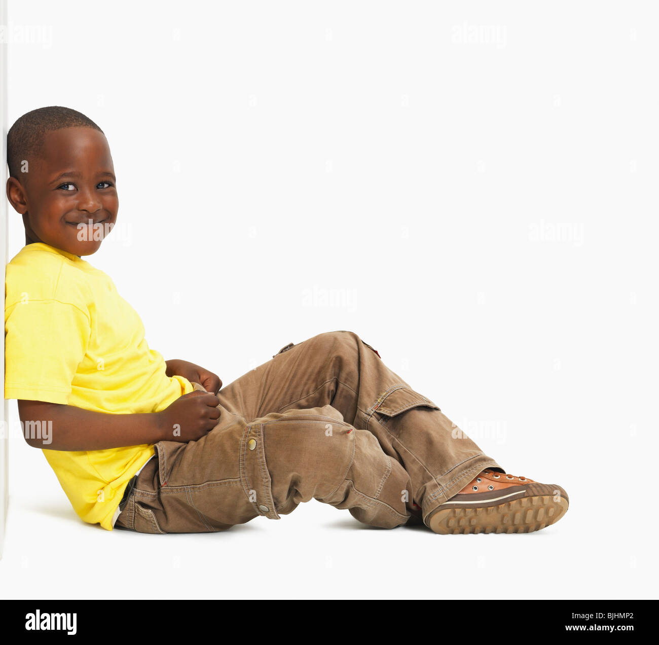 Three Year Old Black Boy On His Haunches Smiling Stock Photo Download