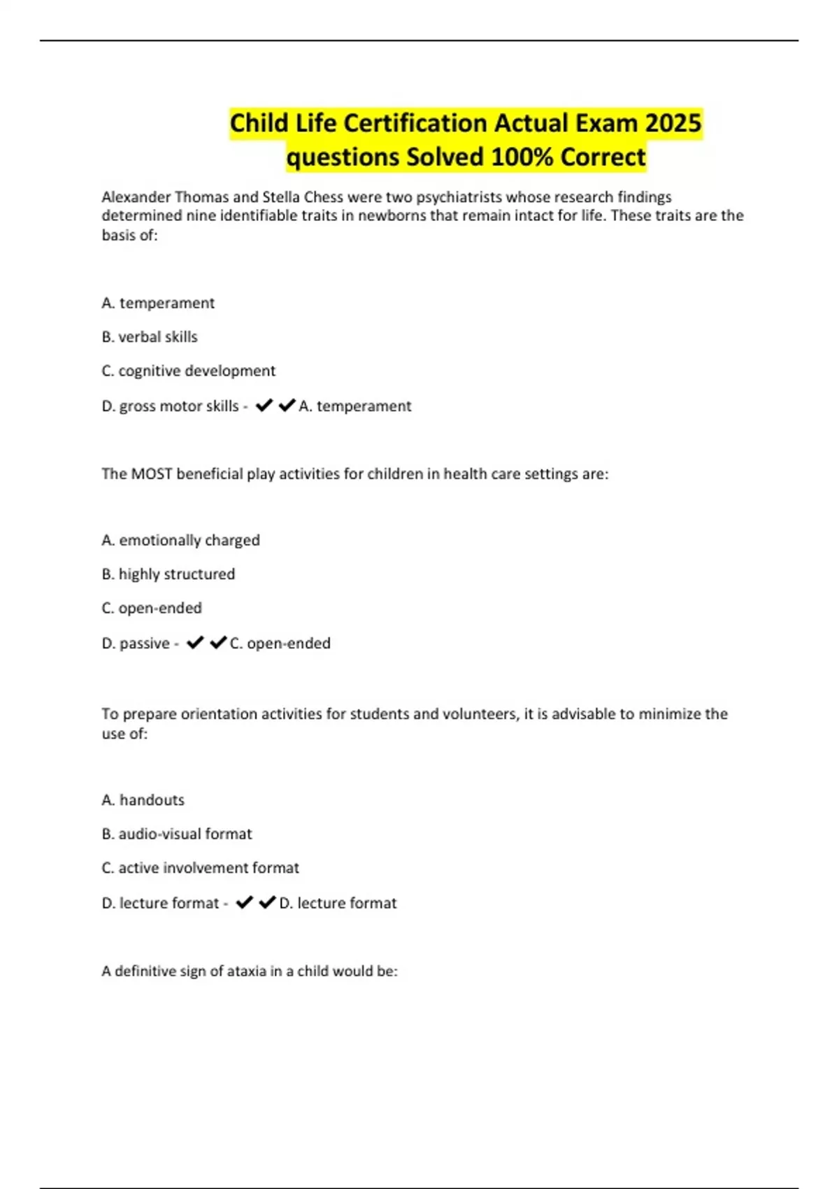 Child Life Certification Actual Exam 2025 questions Solved 100% Correct