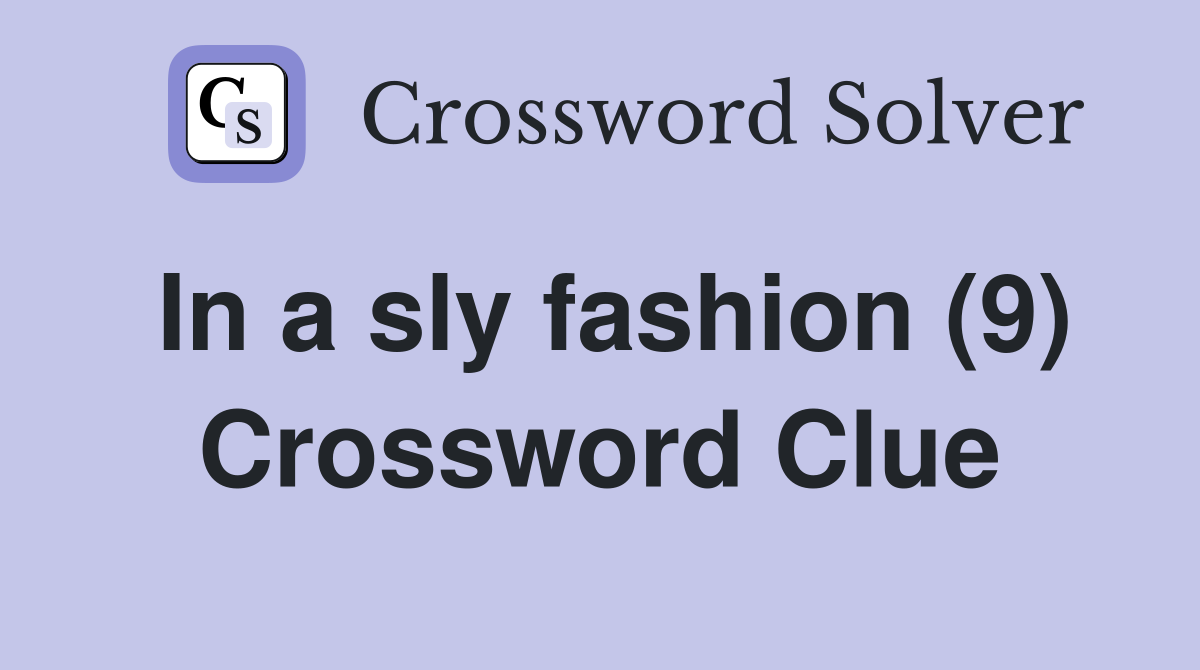 In a sly fashion (9) Crossword Clue Answers Crossword Solver