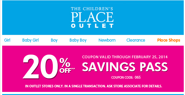 Children #39 s Place Printable Coupon: 20% Off Purchase Your Retail Helper