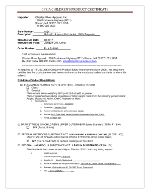 Fillable Online Fillable Online CPSIA CHILDRENS PRODUCT CERTIFICATE