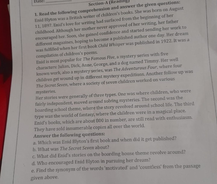 SOLVED: 1 Read the following comprehension and answer the given