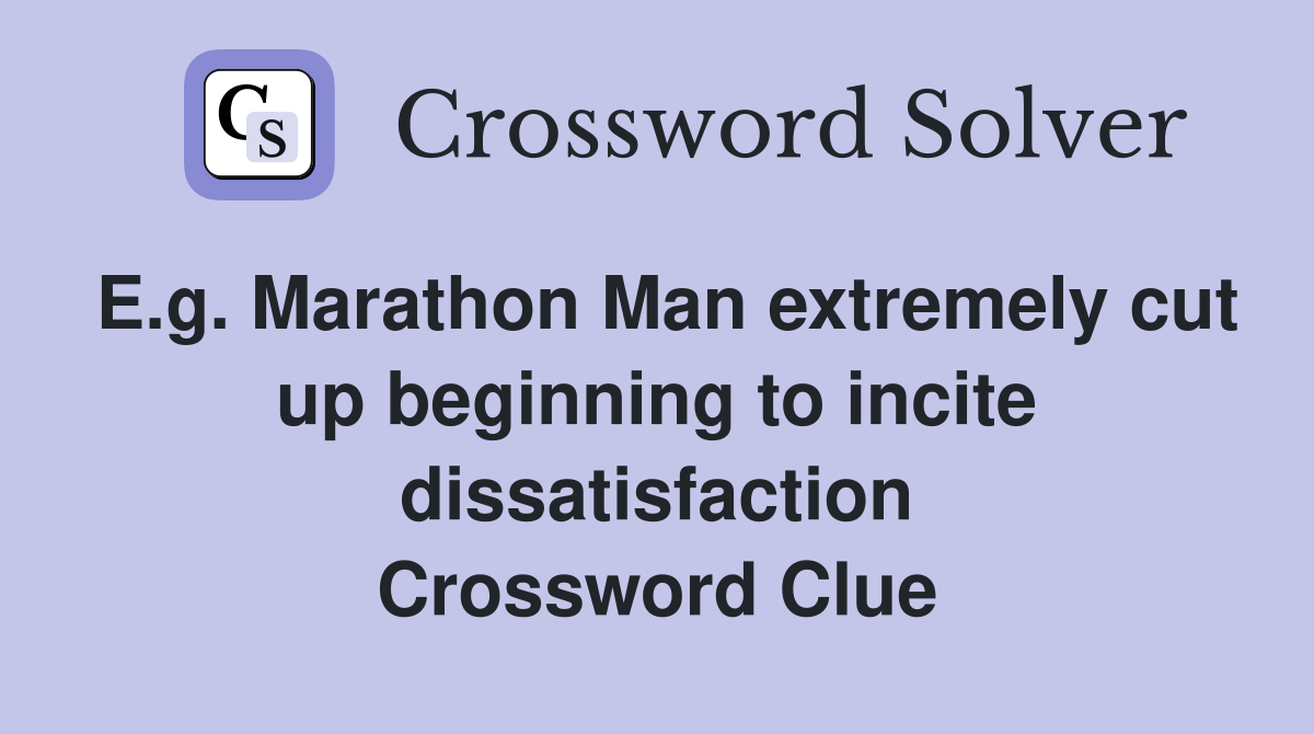 E g Marathon Man extremely cut up beginning to incite dissatisfaction