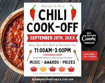 Editable Chili Cook off Flyer Invitation Canva Template Etsy