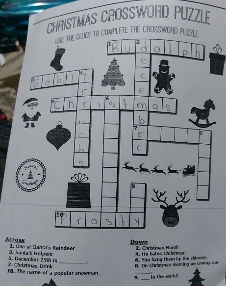 Resuelto:CHRISTMAS CROSSWORD PUZZLE OMPLETE THE CROSSWORD PUZ Across
