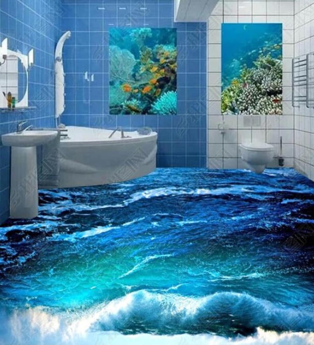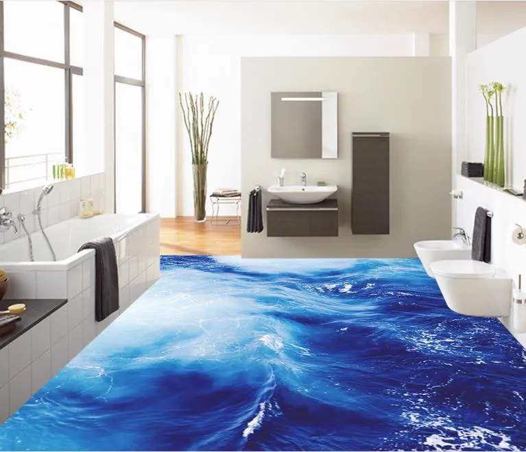 3D Blue Sea Waves Vinyl Floor Mural Self adhesive Vinyl Floor Art
