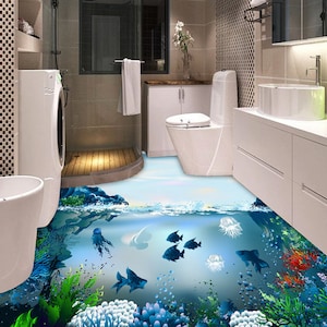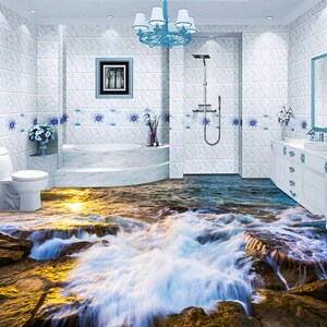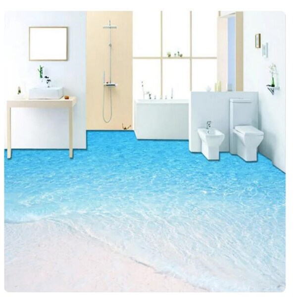 3D Simple and Clear Sea Water Pattern Waterproof Nonslip Self Adhesive
