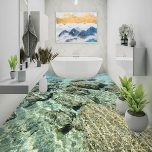 White Sand and Seawater Floor Mural Self Adhesive Custom Sizes Avail