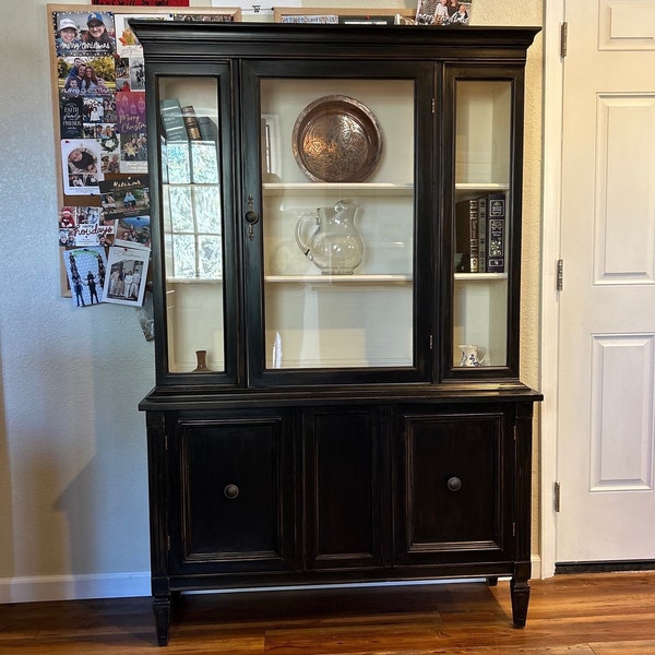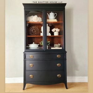 Antique China Cabinet Hutch Custom Refinished Black Duncan Etsy