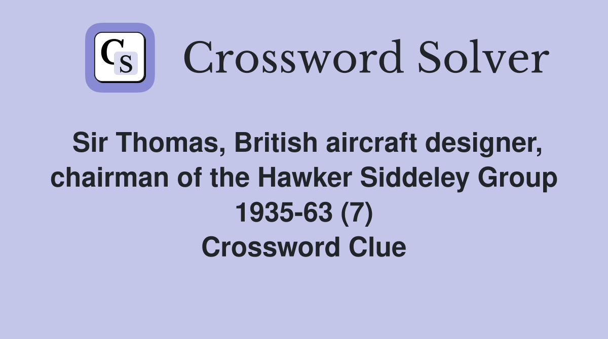 Sir Thomas British aircraft designer chairman of the Hawker Siddeley