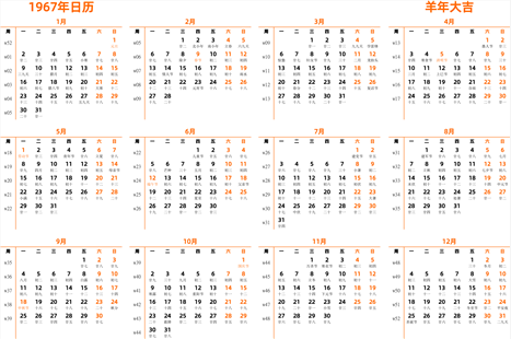 日历表1967年日历 中文版 模板 DF002 日历精灵