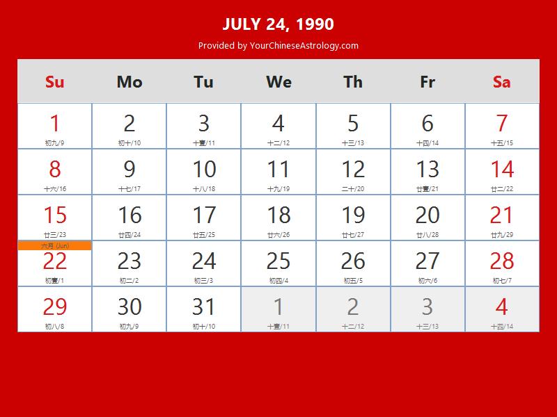 Chinese Calendar Jul 24 1990: Auspicious Things to Do and Hours Bazi
