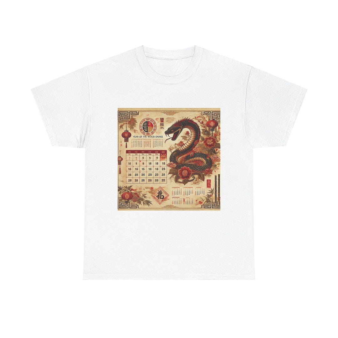 Cotton Tee Chinese Calendar / Chinese Calendar 2005 / Wood Snake Etsy