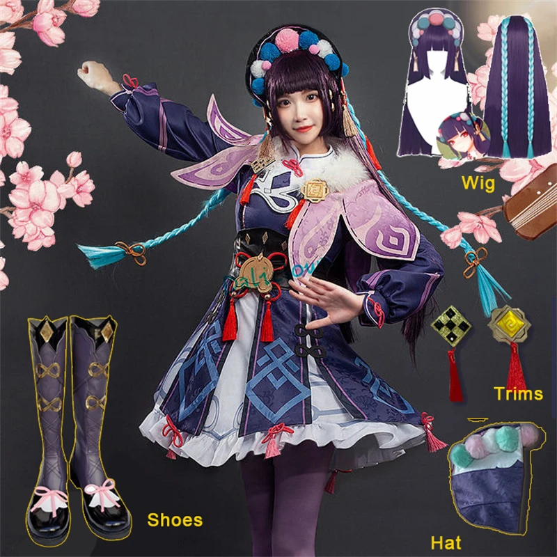 Disfraz de Genshin Impact YunJin para mujer zapatos de Cosplay peluca
