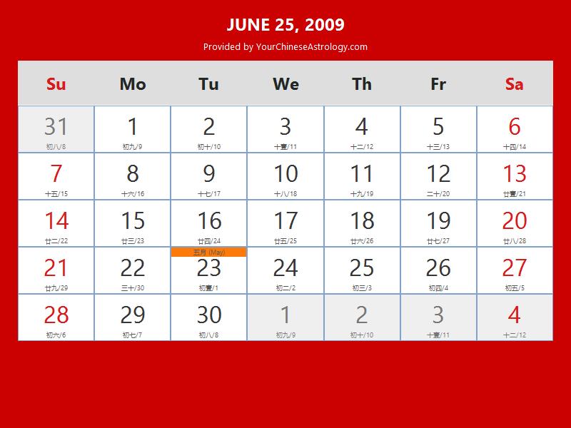 Chinese Calendar Jun 25 2009: Auspicious Things to Do and Hours Bazi