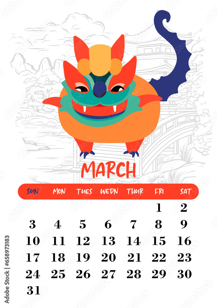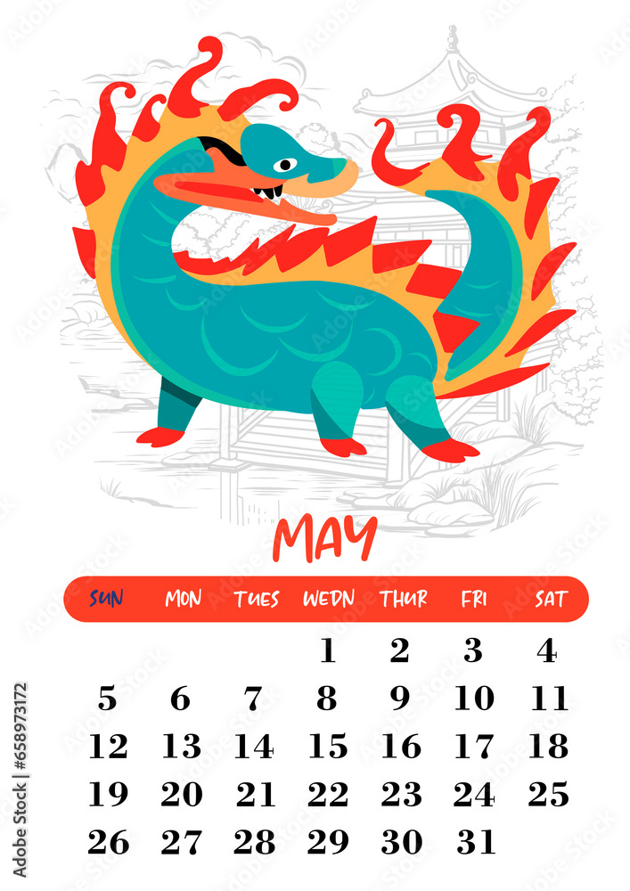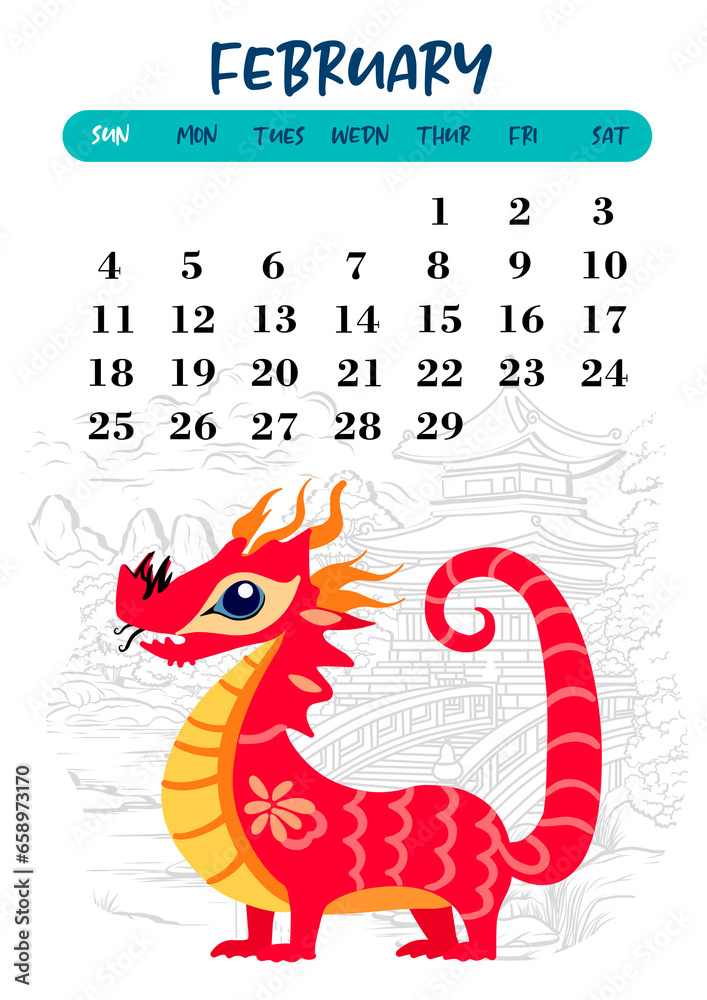 Calendar Dragon 2024 Vector Poster Calendar Oriental Chinese New Year