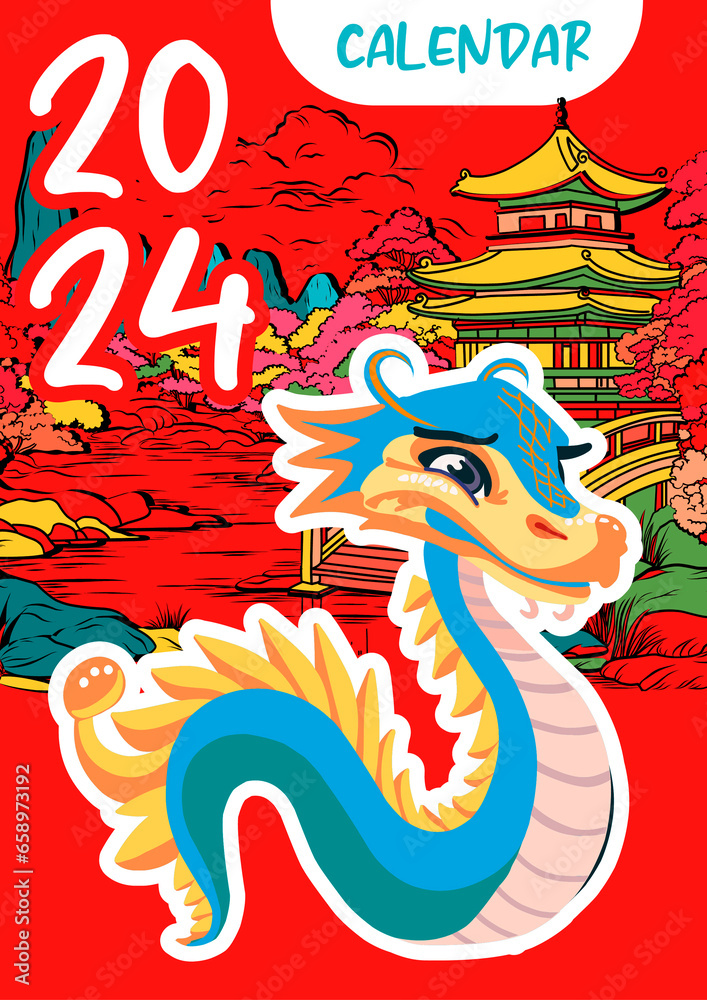 Calendar Dragon 2024 Vector poster calendar oriental Chinese New Year