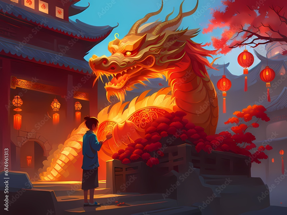 Chinese dragon calendar 2024 Symbol of 2024 year is dragon Stock