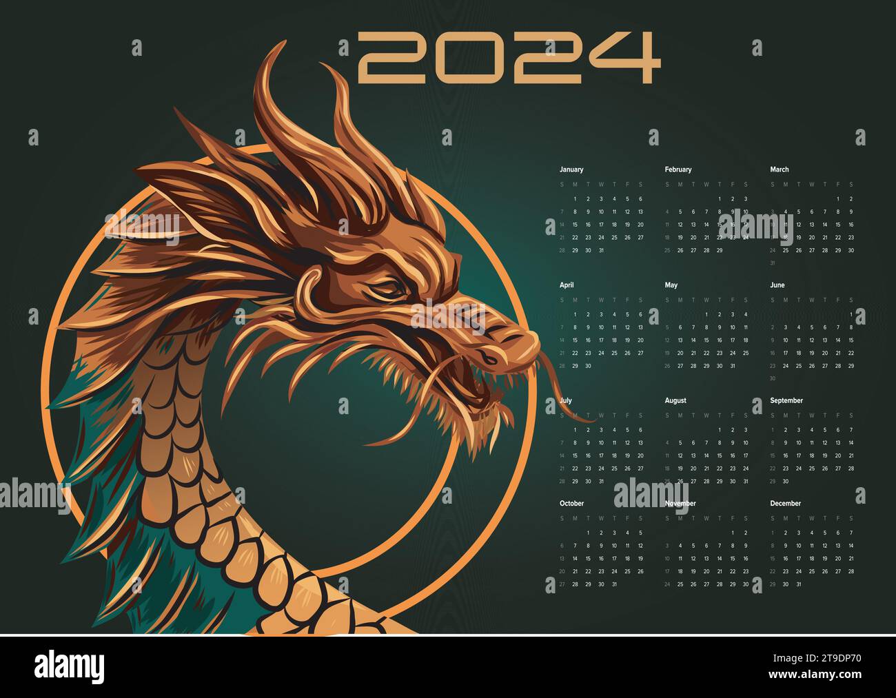 2024 Calendar with Dragon Chinese Symbol Stock Illustration