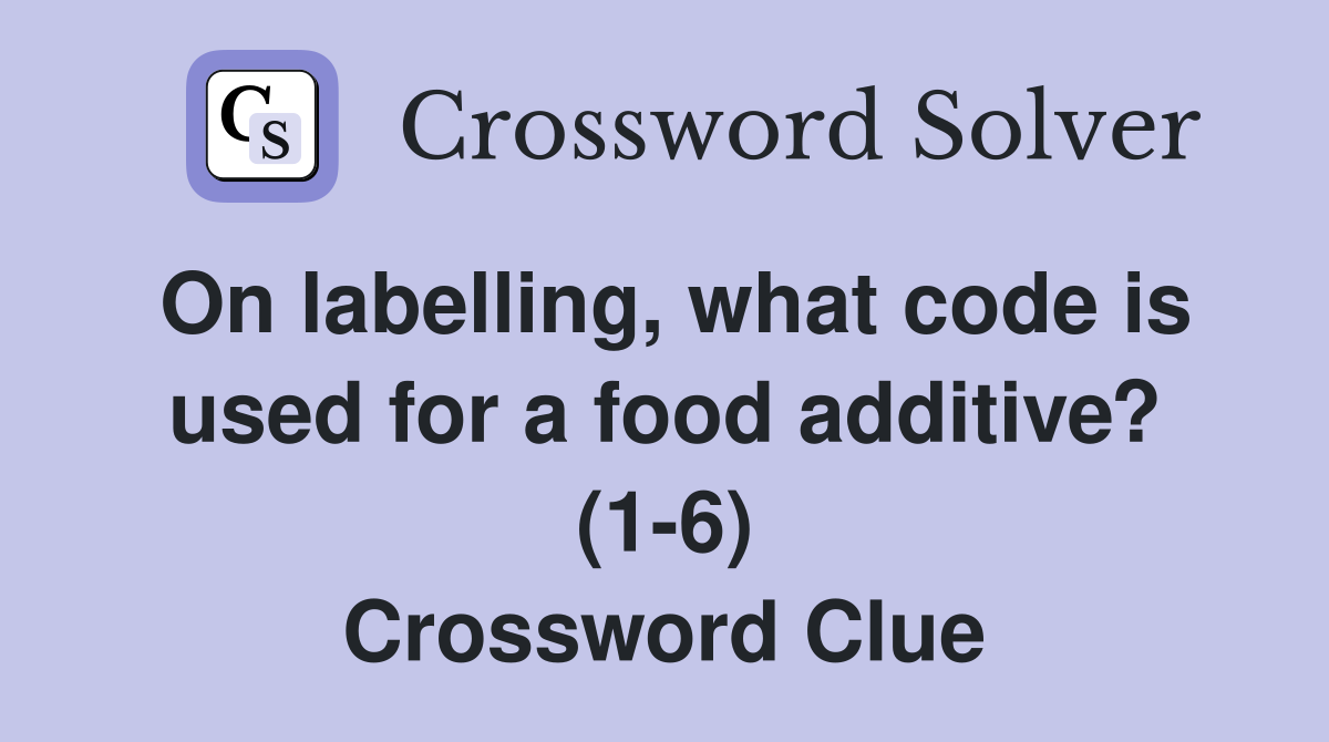 On labelling what code is used for a food additive? (1 6) Crossword