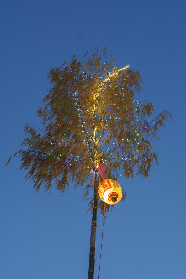 Red Lanterns Hanging from a Tree at Night during a Chinese New Year