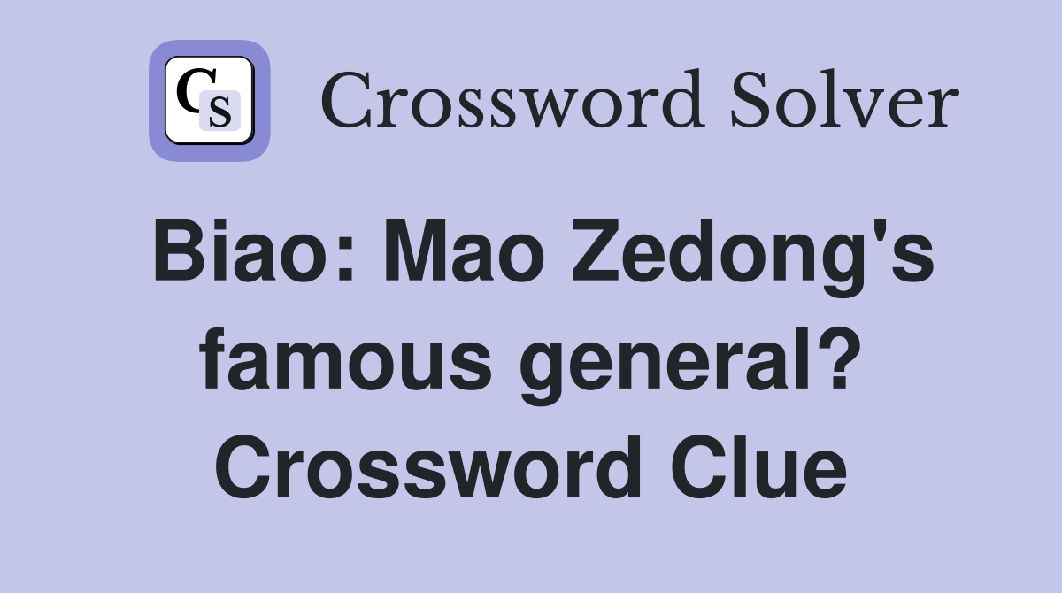 Biao: Mao Zedong s famous general? Crossword Clue Answers Crossword