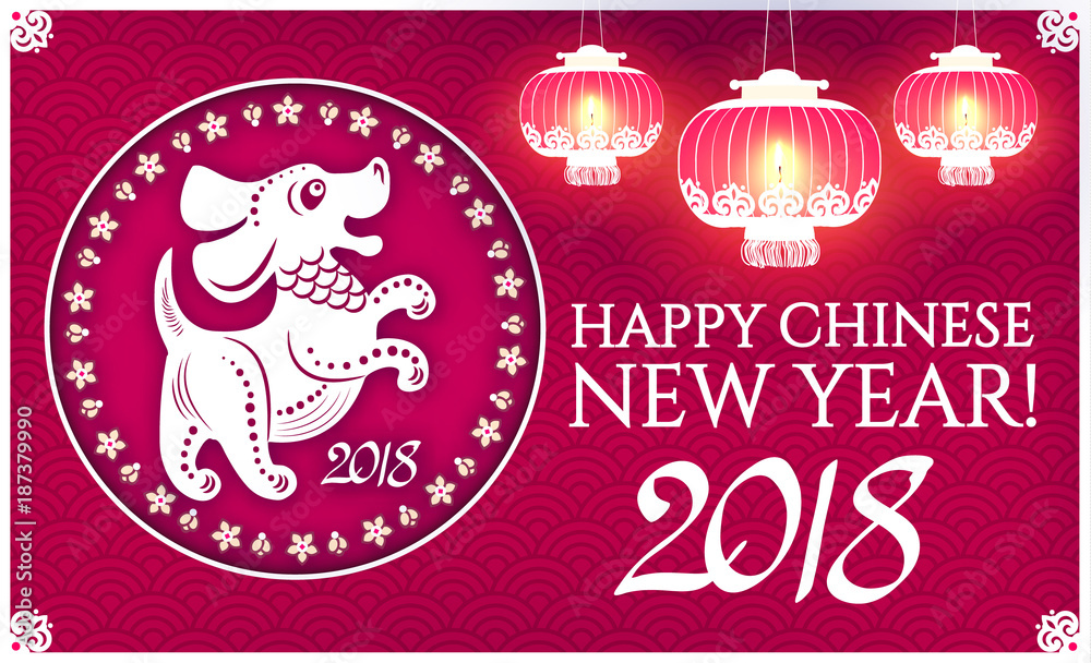 Happy Chinese New Year with Zodiac Dog and Shining Lanterns Lunar
