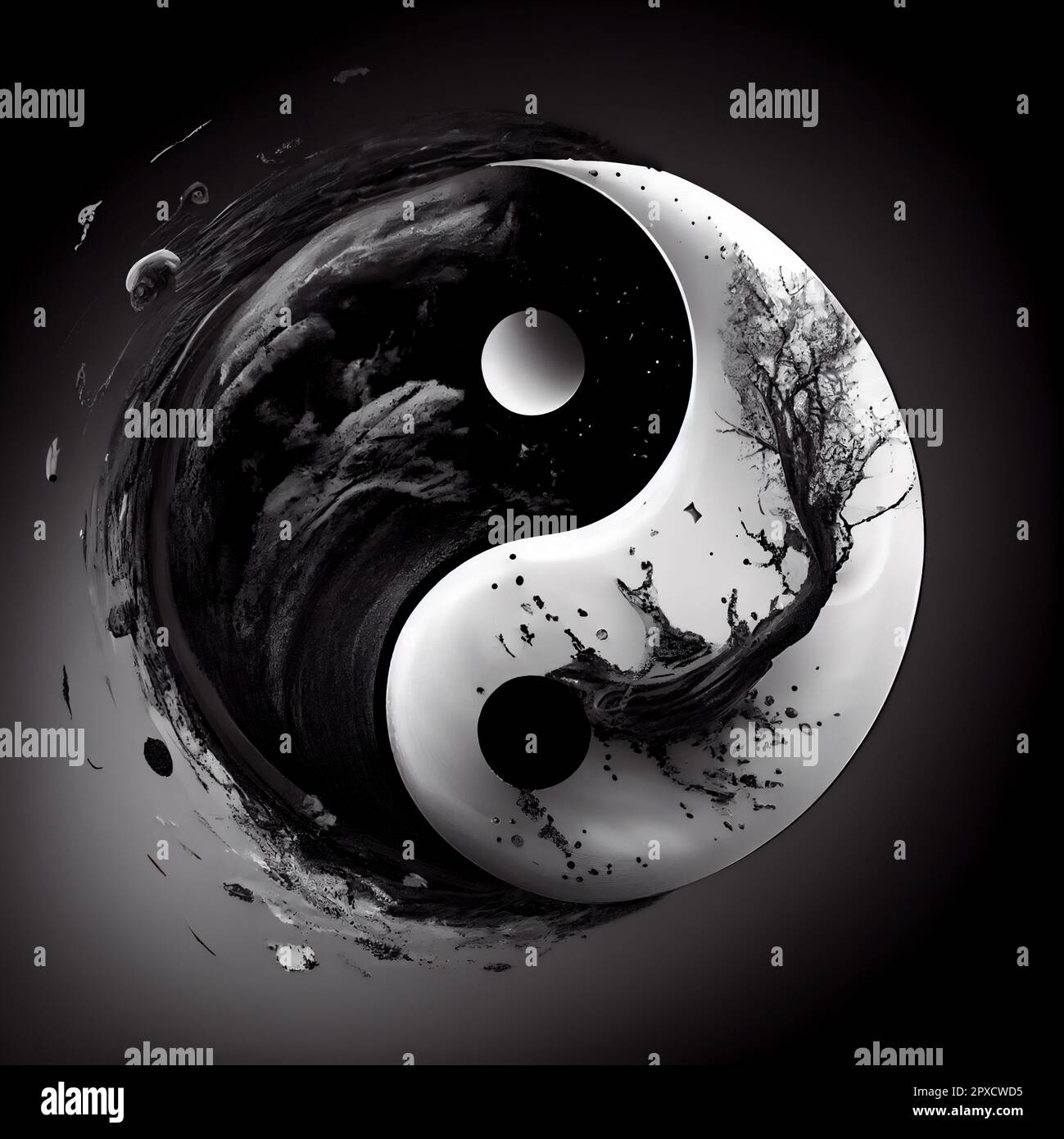 Abstract yin yang symbol Chinese philosophical concept 3D illustration