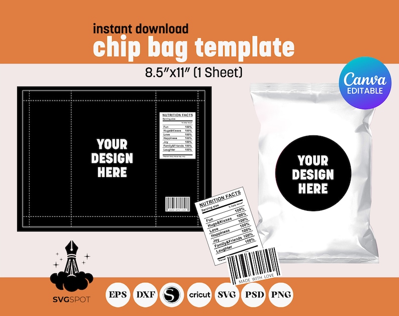 CANVA Chip Bag Template Chip Bag Template Editable Chip Bag Template
