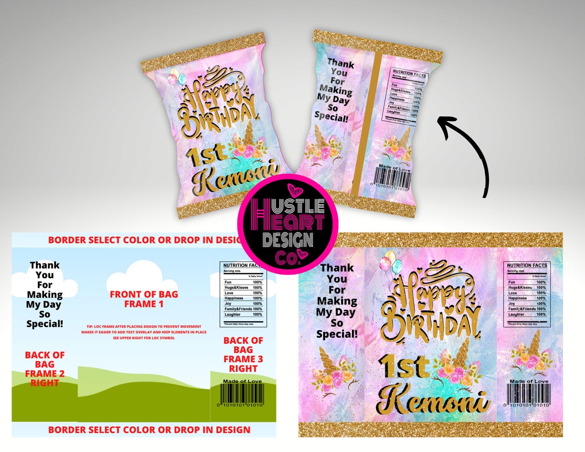Editable Chip Bag Template for Canva Editable Unicorn Chip Bag