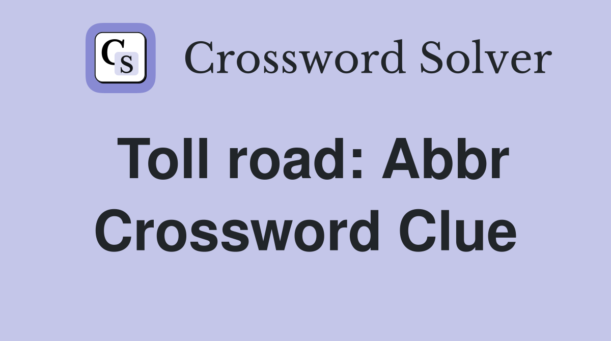 Toll road: Abbr Crossword Clue Answers Crossword Solver