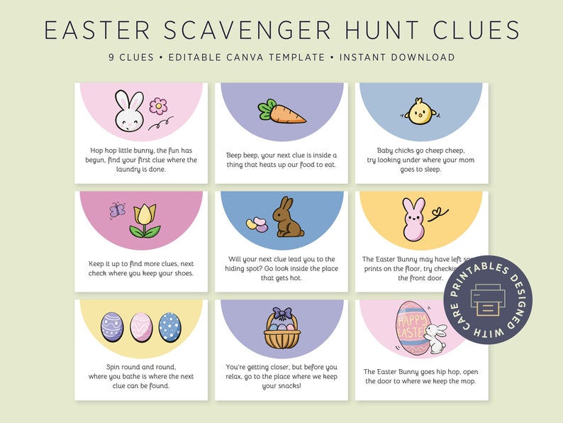Easter Scavenger Hunt Clues Canva Editable Egg Hunt Clue Cards for