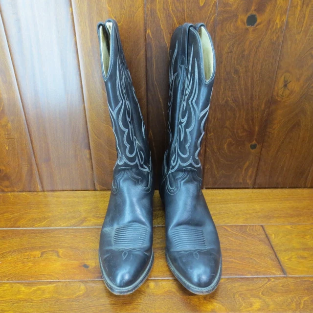 J CHISHOLM COWBOY Boots Men #39 s 9 5 EE D930 Black Leather Western Pull On
