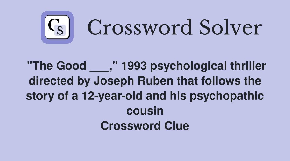 quot The Good quot 1993 psychological thriller directed by Joseph Ruben