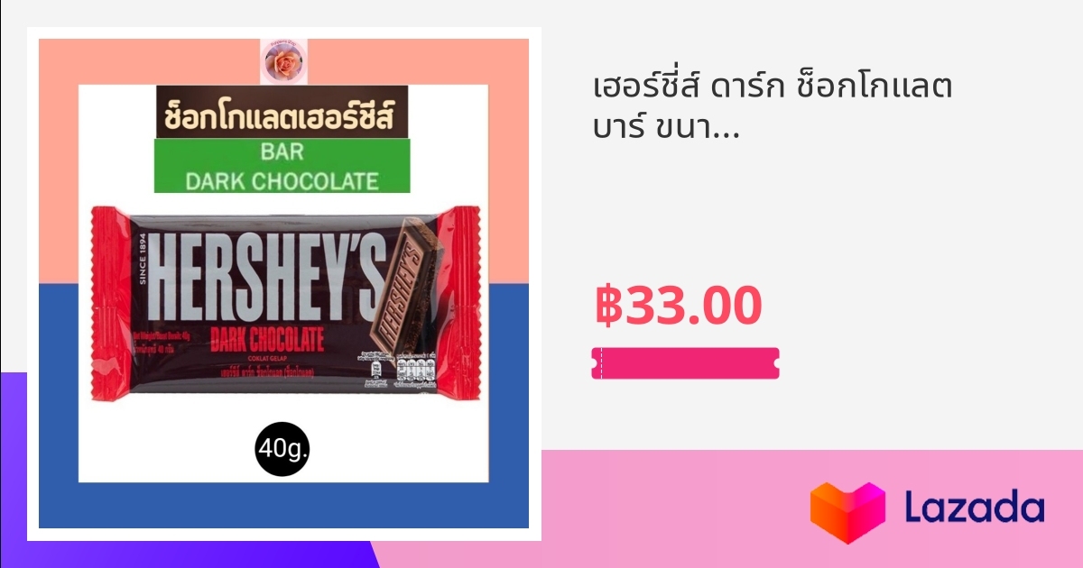 เฮอร์ชี่ส์ ดาร์ก ช็อกโกแลต บาร์ ขนาด 40g Hersheys Dark Chocolate 40g